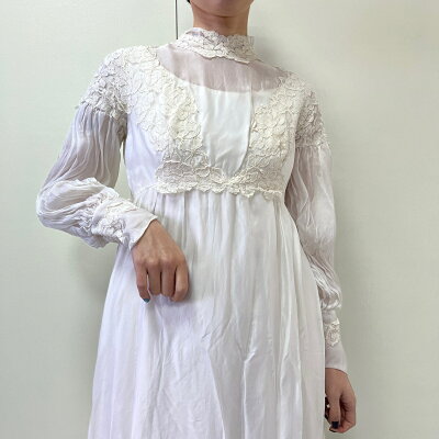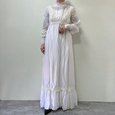 古着 70'S UNKNOWN ウエディングドレス ハイネック マキシ丈 長袖 フレア ワンピース レディースL ヴィンテージ /evb002289 【中古】【エルルV2401】 【240115】
