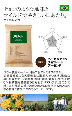 ●チョコレートやヘーゼルナッツのような風味と マイルドでやさしい口あたりが特徴の「ブラジル」。