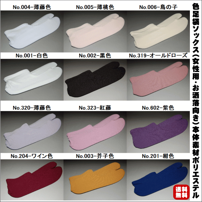 No.004-薄藤色 No.005-薄桃色 No.006-鳥の子 No.001-白色 No.002-黒色 No.319-オールドローズ No.320-薄藤色 No.323-紅藤 No.602-紫色 No.204-ワイン色 No.003-芥子色 No.201-紺色 選べるカラー展開の 無地色足袋ソックス 日本製・コハゼなし・のびるたび (ナイロン素材)