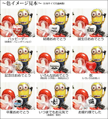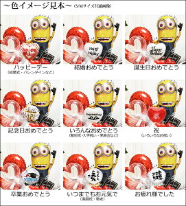 ミニオンズ 結婚式 バルーン電報 誕生日 プレゼント お祝い キラキラ卓上バルーンアレンジ:ミニオン&オープンハート/レッド/ダブル/M/ストライプ/名入れ可