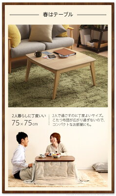 家具 おしゃれ かわいい おすすめ インテリア雑貨 こたつ 正方形 スクエアこたつ 75x75cm+はっ水リバーシブル省スペースこたつ布団 2点セット こたつ布団 ロー 天然木 ウォールナット オーク こたつカラー:オーク(ナチュラル)/布団:グリーンxグレー