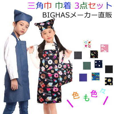 エコバッグプレゼント】キッズ エプロン 子供用 三角巾 巾着袋 3点セット 子供エプロン 給食着 小学生 中学生 幼稚園 保育園 デニム ネームタグ かわいい 無地 シンプル こども 男の子 女の子 巾着バッグ おしゃれ BIGHAS 日米等7か国で発売中 ブランド 幼児 園児 低学年 高学年 かぶるだけ 100 110 120 130 140 150 160 cm 男女兼用 入学式 ギフト ユニセックス 着脱簡単 柄 恐竜 星 ハート 宇宙 花 車 ◎洗濯機丸洗いしても色落ちせず、アイロンも不要です。
