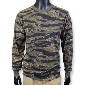 長袖Tシャツ ロスコ綿/ポリエステル混紡を特長とした着易い 長袖TシャツTシャツ全体がタイガーストライプカモフラージュの迷彩柄の長袖Tシャツ。
