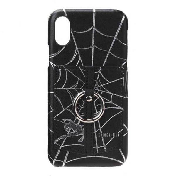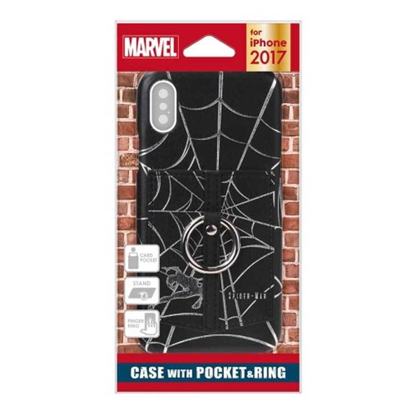 iPhone X ケース MARVEL スパイダーマン ハードカバー ポケット スマホリング 落下防止 カードポケット おしゃれ シンプル キャラ PGA