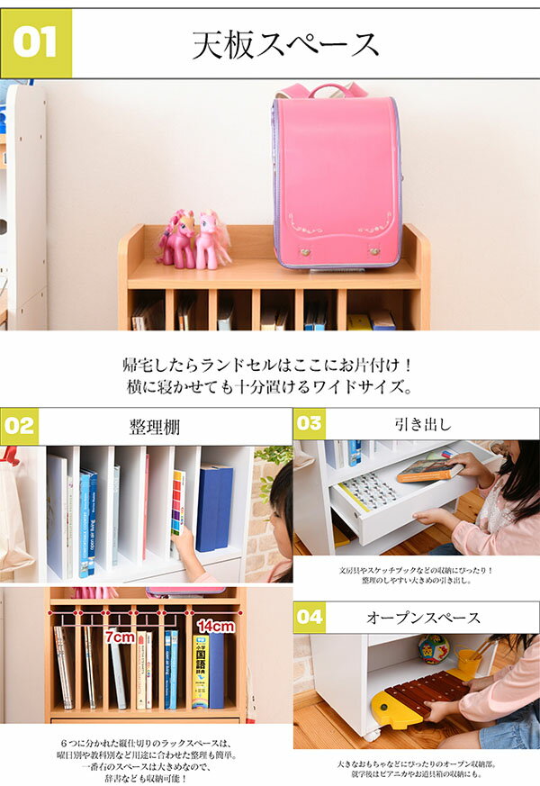 ■商品説明 「リビング学習」にぴったりなキャスター付きのランドセルラック。