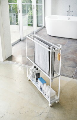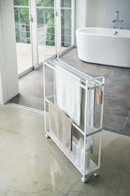 キャスター付きで移動もラクラク!幅約15cmスリムなバスタオルハンガー。