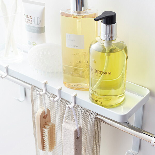 タオルバーに差し込むだけで簡単に設置できるシェルフ。